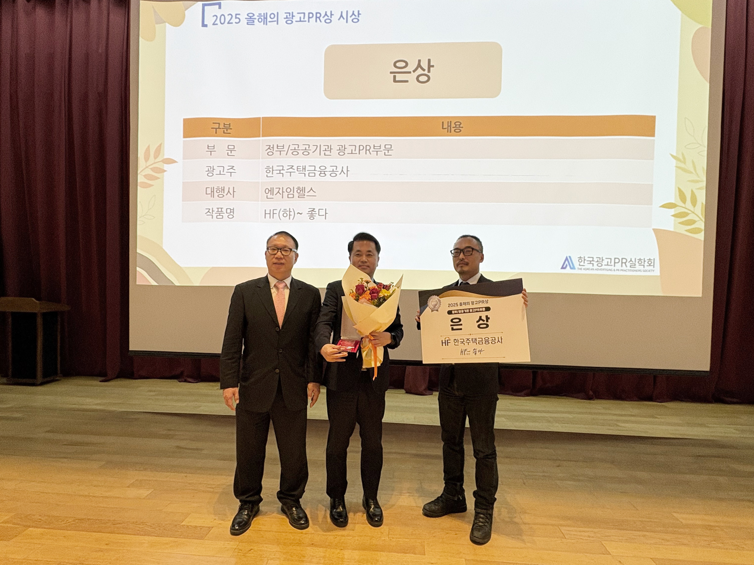 엔자임헬스가 한국광고PR실학회가 주관하는 2025 올해의 광고PR상에서 ‘정부/공공기관 광고PR부문 ‘은상’을 수상했습니다. 한국주택금융공사의 HF(햐)~ 좋다 캠페인을 성공적으로 이끈 결과입니다. 같은 캠페인으로 제3회 한국공공브랜드 대상 시상식에서는 최우상을 수상했습니다! 건강한 거주환경을 위해 노력해주신 마케팅 본부 여러분 축하 드립니다!