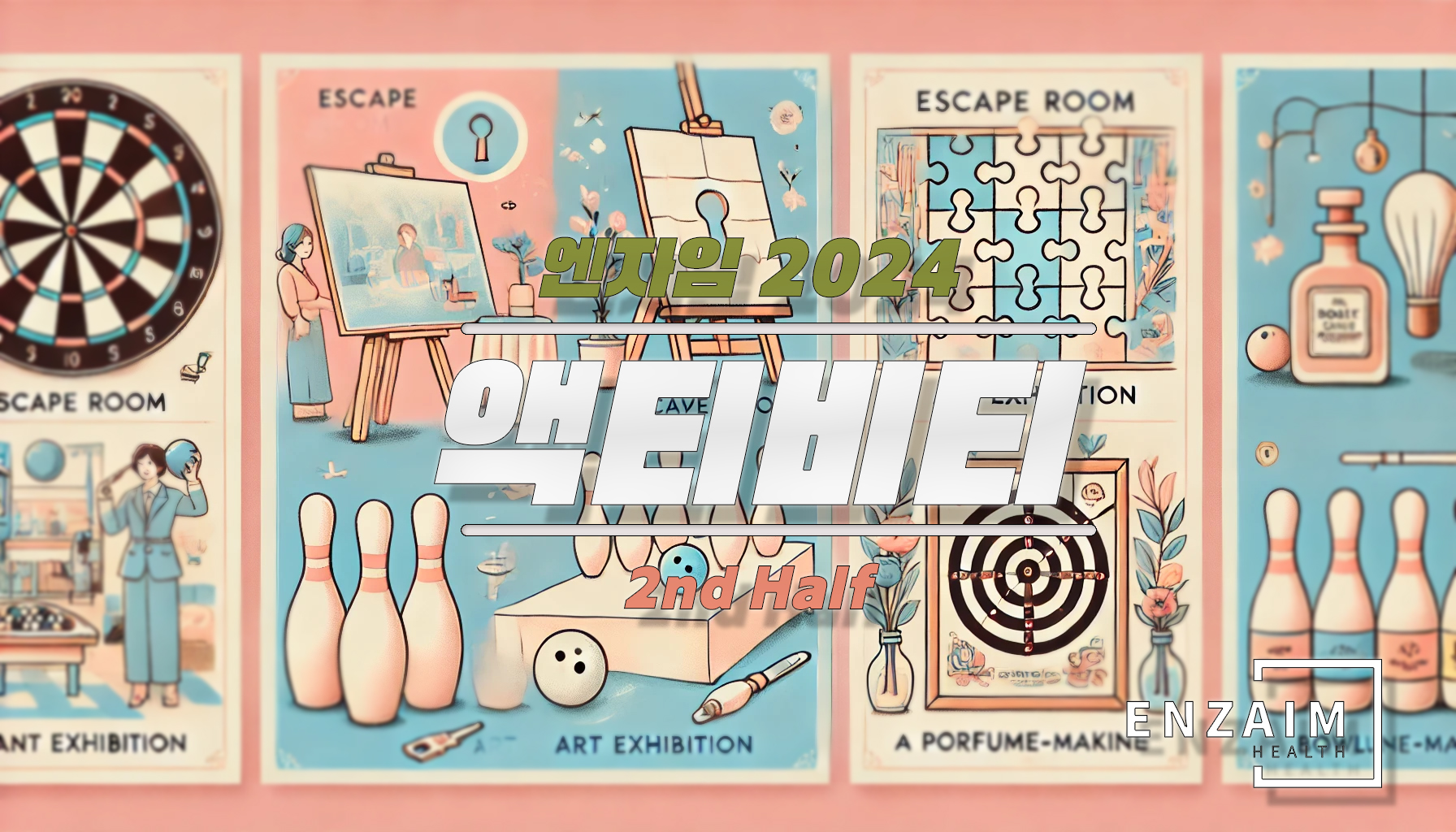 2024년 처음 시도했던 액티비티가 상반기에 성황리에 마무리되었습니다. “탁구도 못 치는데 재미있겠어?” 하던 엔자이머들도 신나게 즐기고 갔다는 후문이 있었습니다. 하반기에는 총 4개의 액티비티가 열렸습니다: 미술 전시 관람, 방탈출 게임, 커스텀 향수 제작, 그리고 볼링 활동입니다. 이러한 취미 활동을 통해 교류가 적었던 팀원들과도 소통하고, 새로운 경험을 통해 창의력을 크게 확장할 수 있는 시간을 가질 수 있었습니다. 벌써부터 내년이 기다려진다는 엔자이머들이 많다고 하는데요. 더 멋진 활동으로 찾아뵙겠습니다!