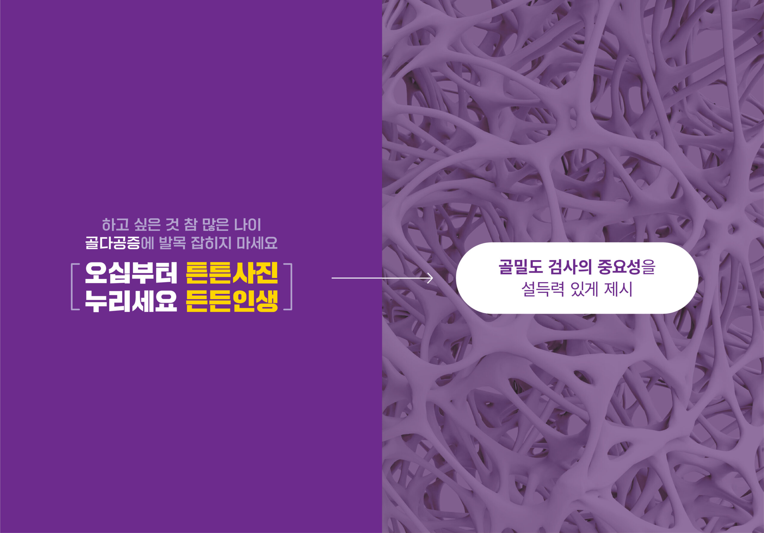 마케팅 본부에서는 골다공증 검진을 단순 ‘질병 예방’ 차원이 아닌 ‘삶의 개선’ 문제로 전환시킨 재치있는 캠페인을 진행했습니다. “오십부터 튼튼사진, 누리세요 든든인생”이라는 메시지로 골밀도 검사의 중요성을 설득력 있게 제시했습니다. 이 캠페인으로 엔자임헬스는 한국PR대상 마케팅PR(헬스케어) 부문 최우수상 수상을 수상했습니다.