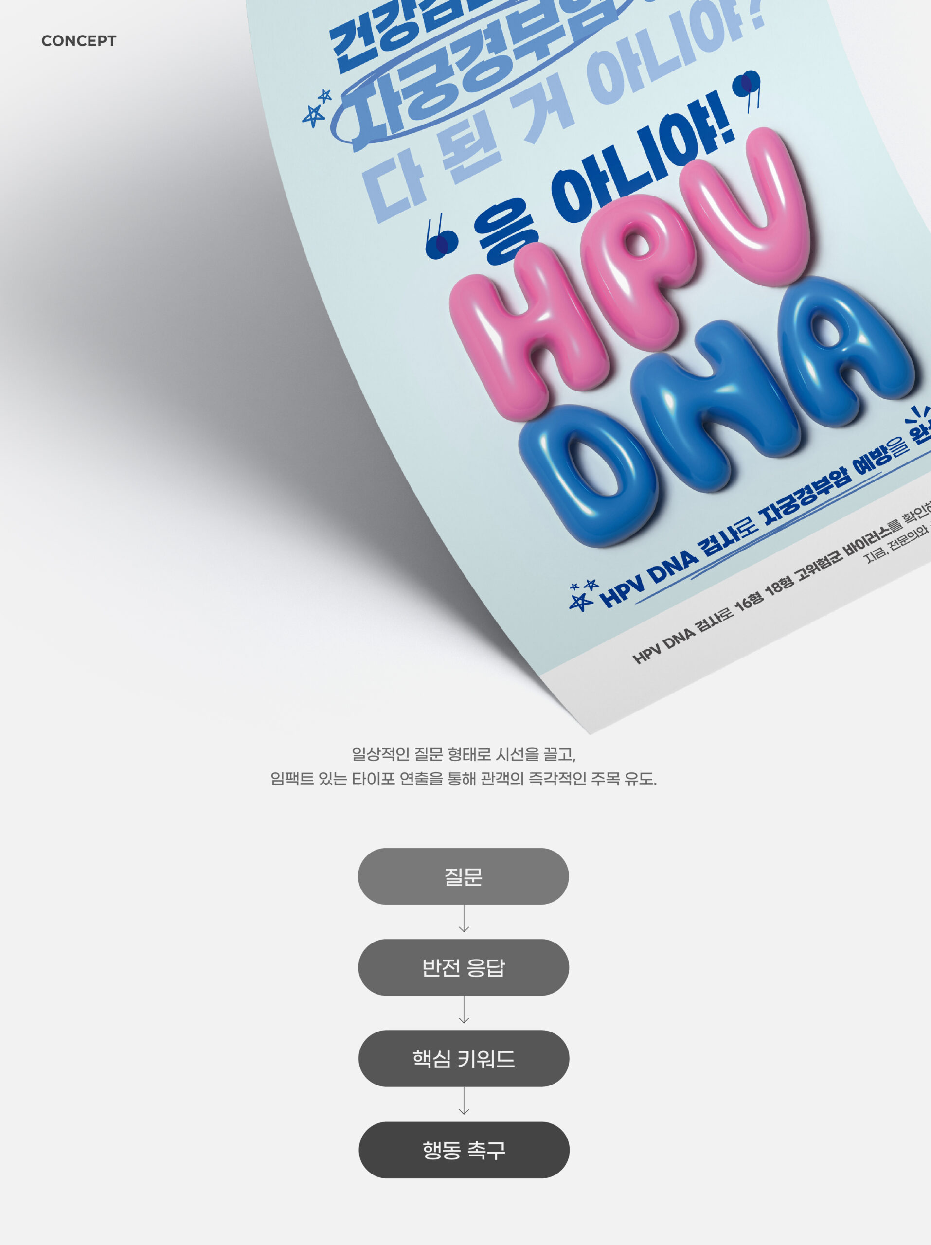 엔자임헬스는 예방백신 접종과 자궁경부 세포검사만으로 ‘완벽한 예방’이 된다고 생각하는 2030 여성을 대상으로 백신은 모든 HPV 감염을 막을 수 없고 자궁경부 세포검사로 안심하기에는 충분하지 않을 수 있음을 전달하고, 자궁경부암의 보다 정확하고 확실한 예방은 HPV DNA 검사임을 알리는 광고, 사내이벤트, 교육 자료 배포 등 캠페인을 진행했습니다.