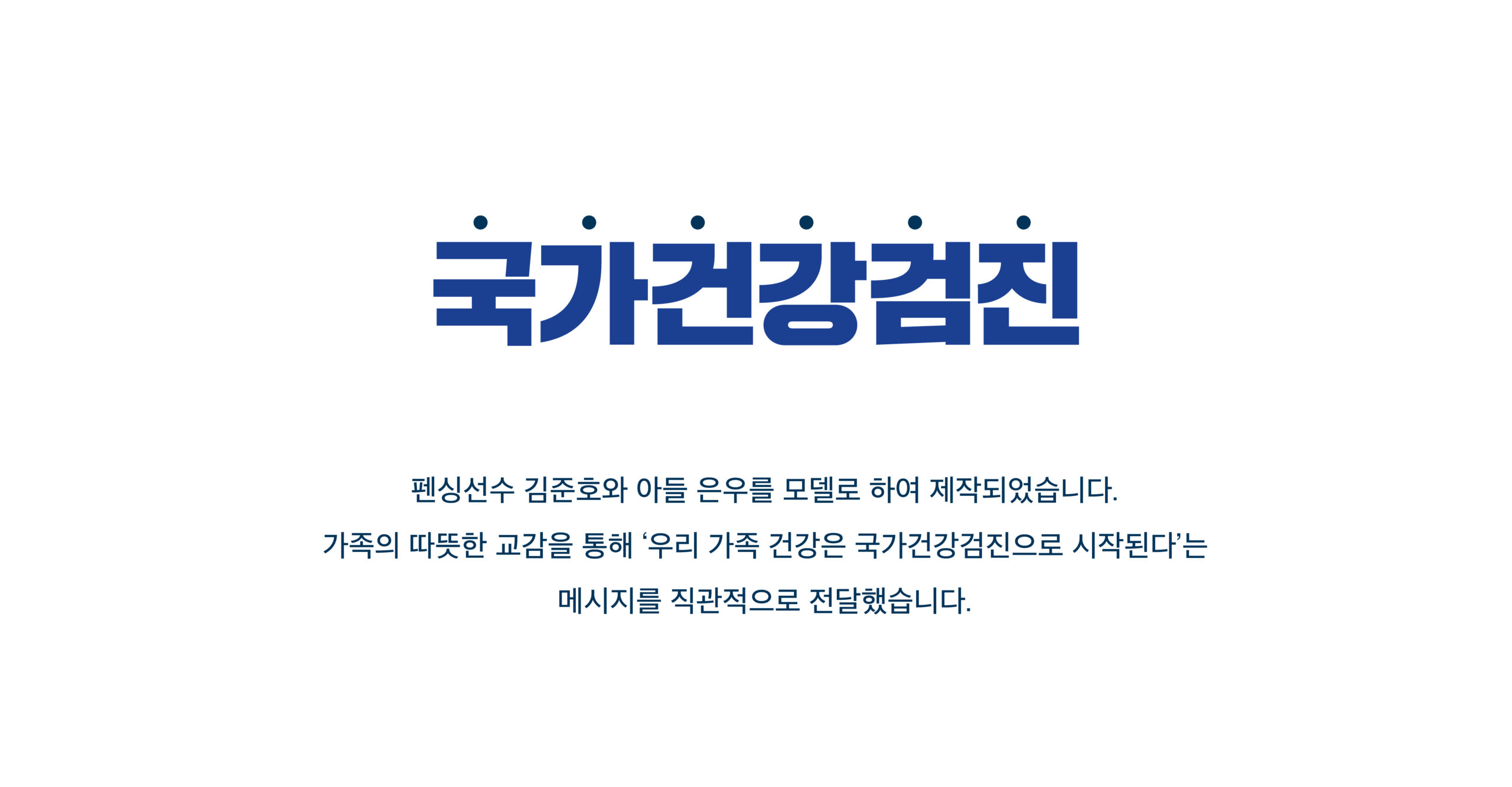 국민건강보험공단은 펜싱선수 출신 김준호와 그의 아들 김은우를 모델로, 가족의 따뜻한 교감을 통해 “우리가족 건강, 국가건강검진으로 시작됩니다”라는 메시지를 직관적으로 전달하며 국가건강검진을 권장하는 광고 캠페인을 진행했습니다.