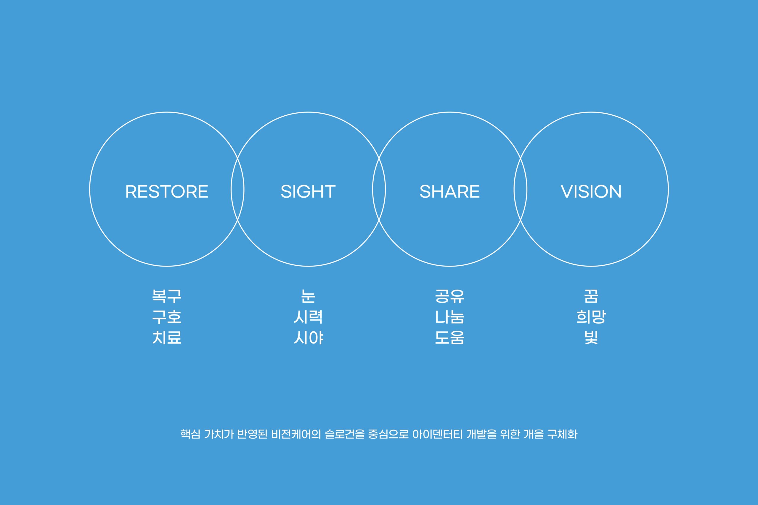 헬스케어 디자인 본부는 국제실명구호단체 비전케어의 BI와 비전 차트를 개발했습니다. 아울러 직접 에디오피아로 날아가 의료 봉사를 하는 등 사회 공헌 활동에 참여해 건강선을 실천하기도 했습니다.
